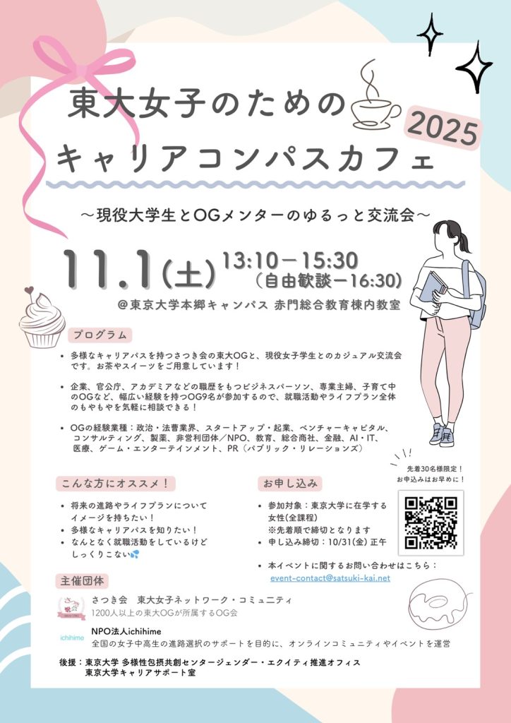 【イベント名】東大女子のためのキャリアコンパスカフェ2025〜現役大学生とOGメンターのゆるっと交流会〜
