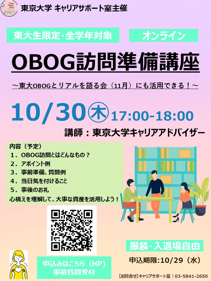 OBOG訪問準備講座~~東大OBOGとリアルを語る会(11月)にも活用できる!~~